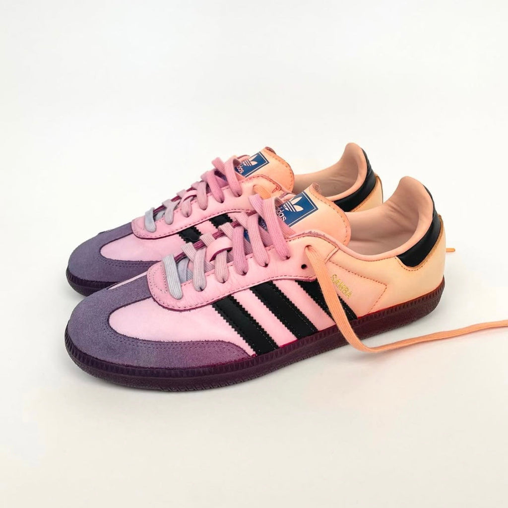 This is dipped into unique dye therefore each pair might be different . Each pair of Custom Adidas Sambas Sneakers is meticulously hand crafted by our skilled artists and sneaker designers who blend their creativity and talent together to every sneaker. These sneakers are made to order, allowing you to choose from a wide range of designs, colors, and themes to suit your individual taste and style.