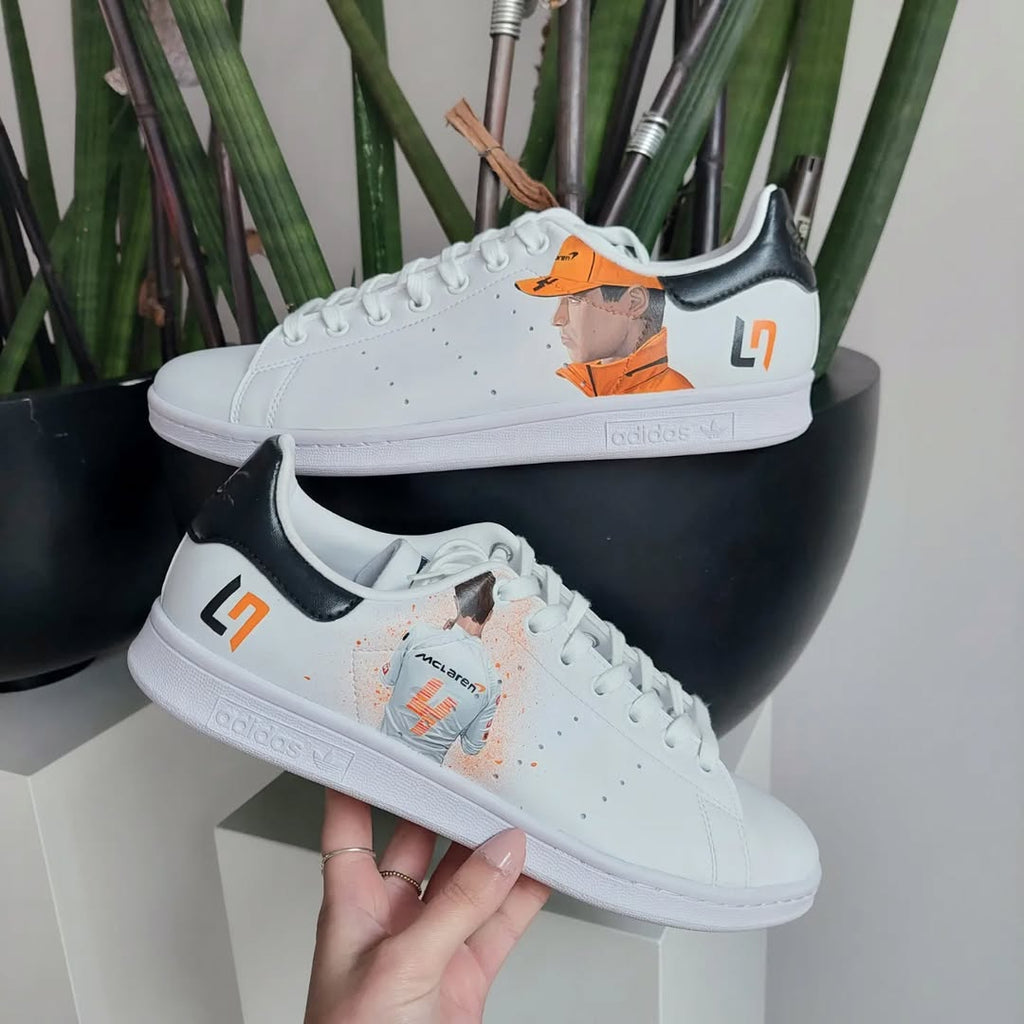 Order your Custom Hand Painted Adidas Stan Smith Sneakers today and step out in style with a pair of sneakers that are truly works of art! Lando Norris McLaren Formula 1 Custom