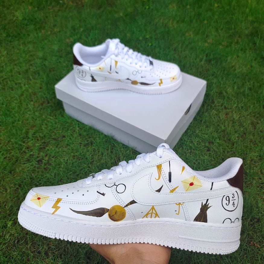 Introducing our unique and eye-catching Custom Hand Painted Nike Harry Potter theme custom Sneakers! These sneakers are the perfect blend of style, art, and personalisation, making them a must-have for any sneaker-head or fashion enthusiast. HP great shoes for all potterheads!