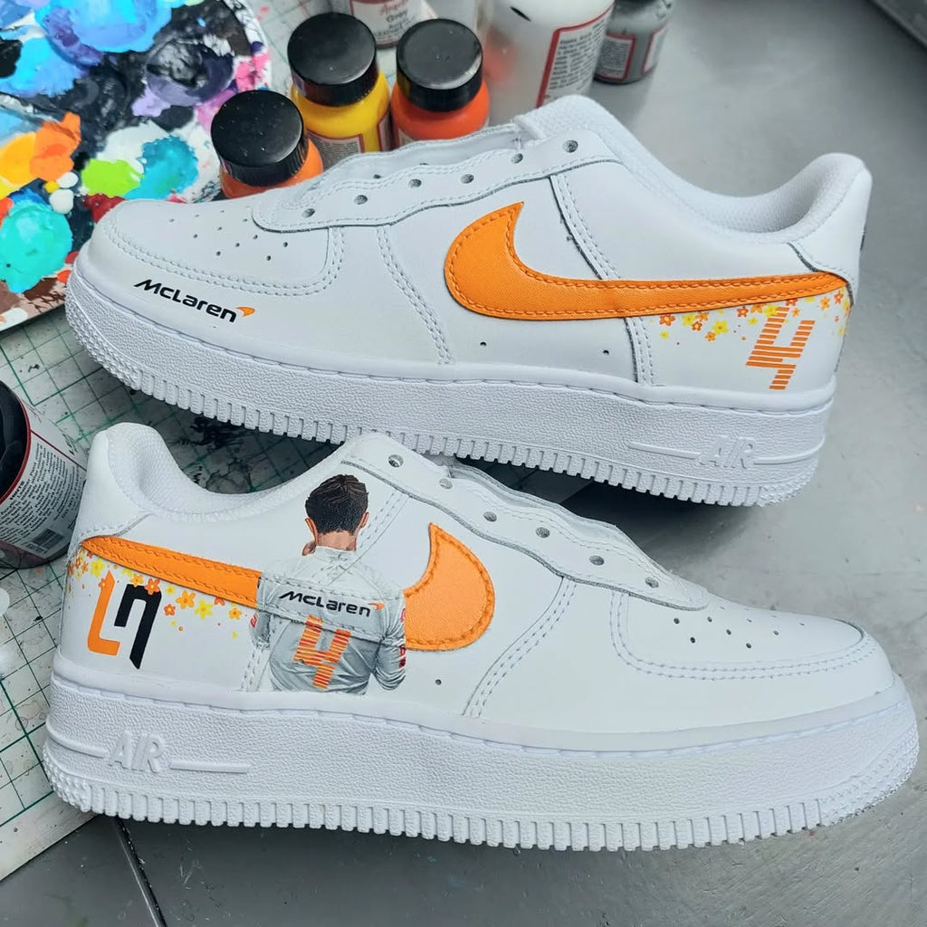 Introducing our unique and eye-catching Custom Nike Air Force 1 inspired by Lando Norris McLaren Formula one Custom.