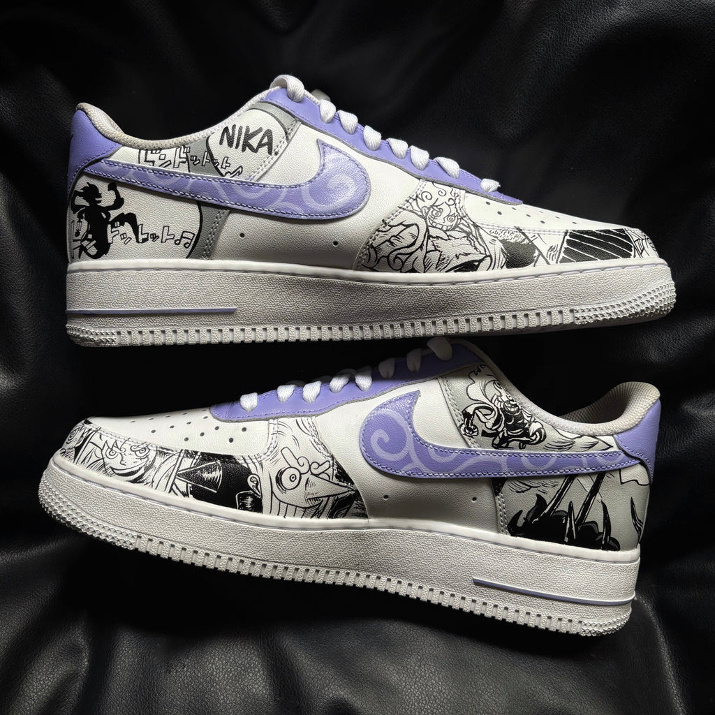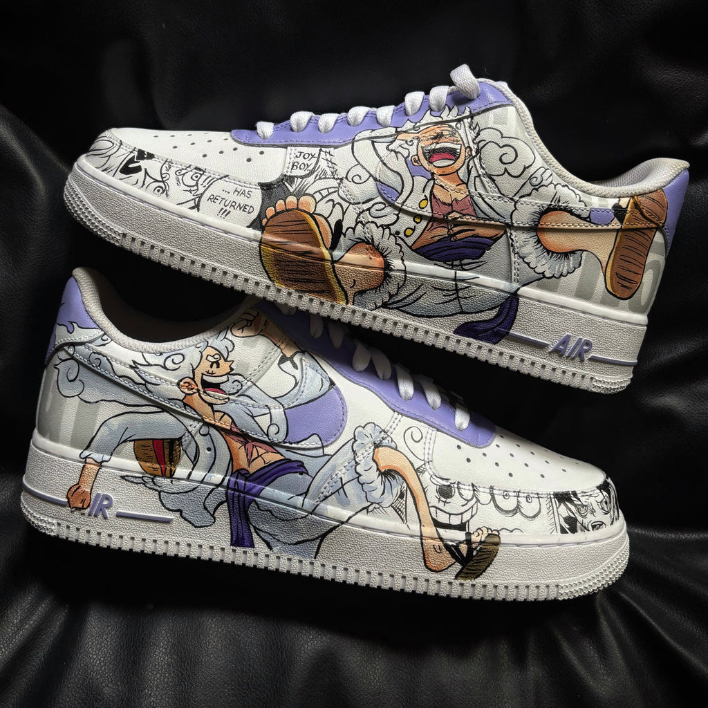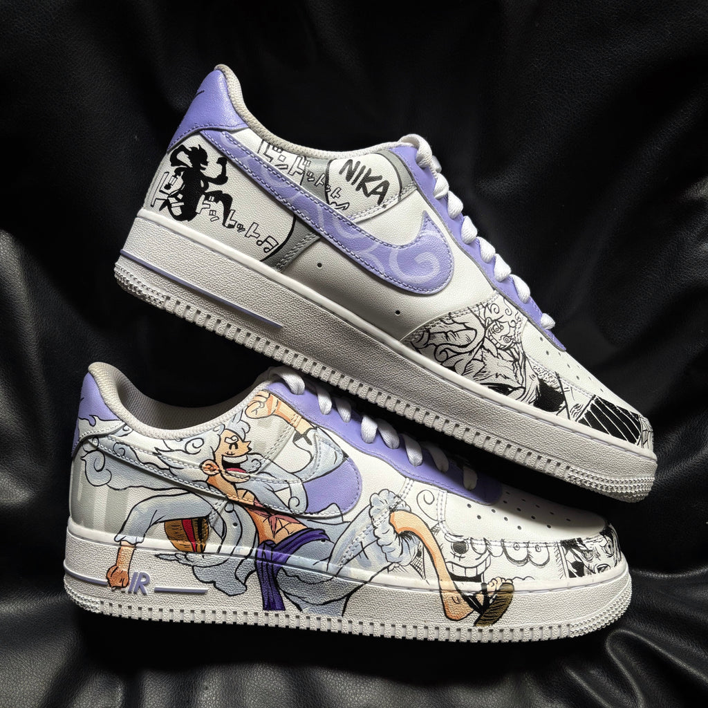 Unleash your inner warrior with the Luffy Gear 5 Custom Nike Air Force 1, exclusively designed by Knickgasm. This limited-edition anime sneaker merges iconic streetwear style with the raw, chaotic power of your favorite anime hero’s ultimate transformation.