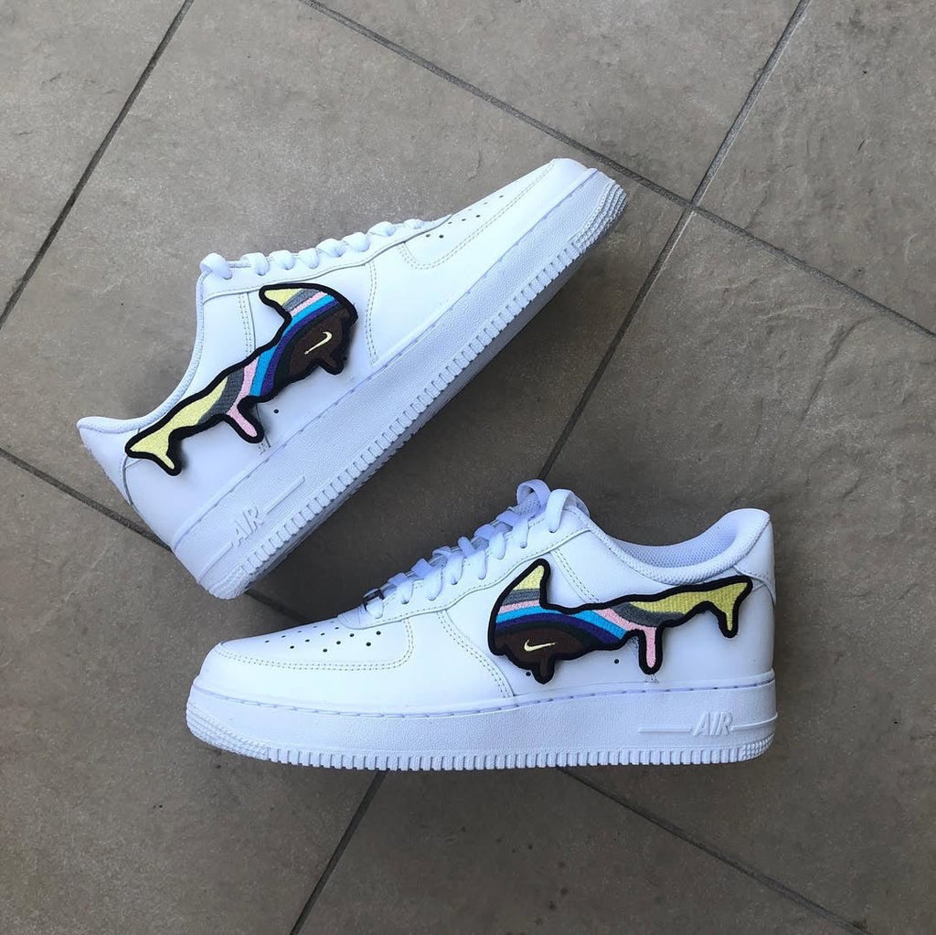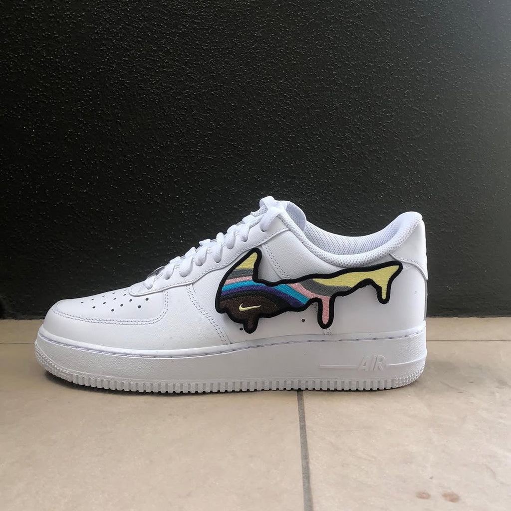 Custom AIR FORCE 1 x Patch Swoosh Embroidered Swoosh with velcro embroidered swooshes. The hook and loop velcro is very strong, you will never have to worry about falling off. You can change the designs as per your outfit and liking.