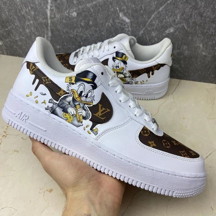 Step into wealth and style with our Scrooge McDuck Custom Nike Air Force 1 sneakers 💰