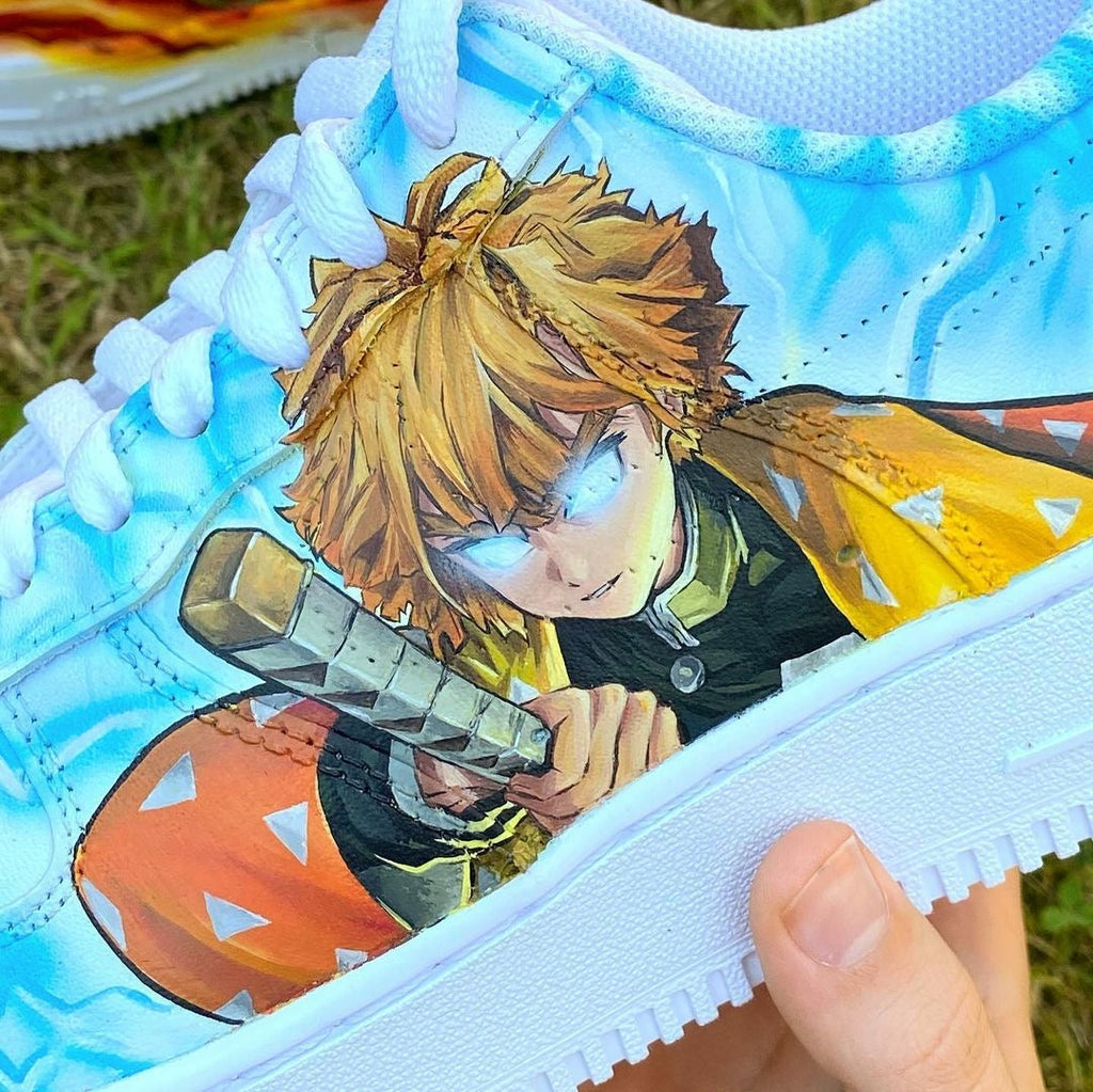 Introducing our unique and eye-catching Custom Tenjiro x Zenistu Demon Slayer Kimetsu no Yaiba Air Force 1 Nike Sneakers! These sneakers are the perfect blend of style, art, and personalisation, making them a must-have for any sneaker-head or fashion enthusiast.