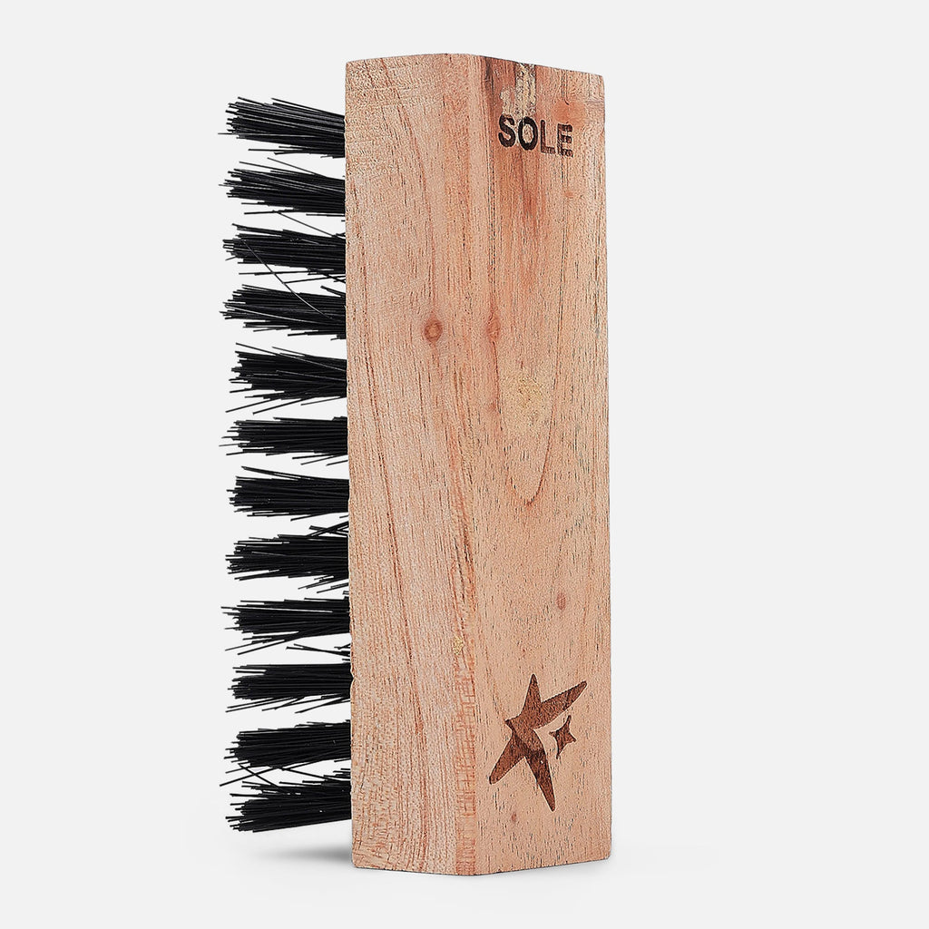 Hard brush for tough soles, ideal for removing stubborn dirt.
