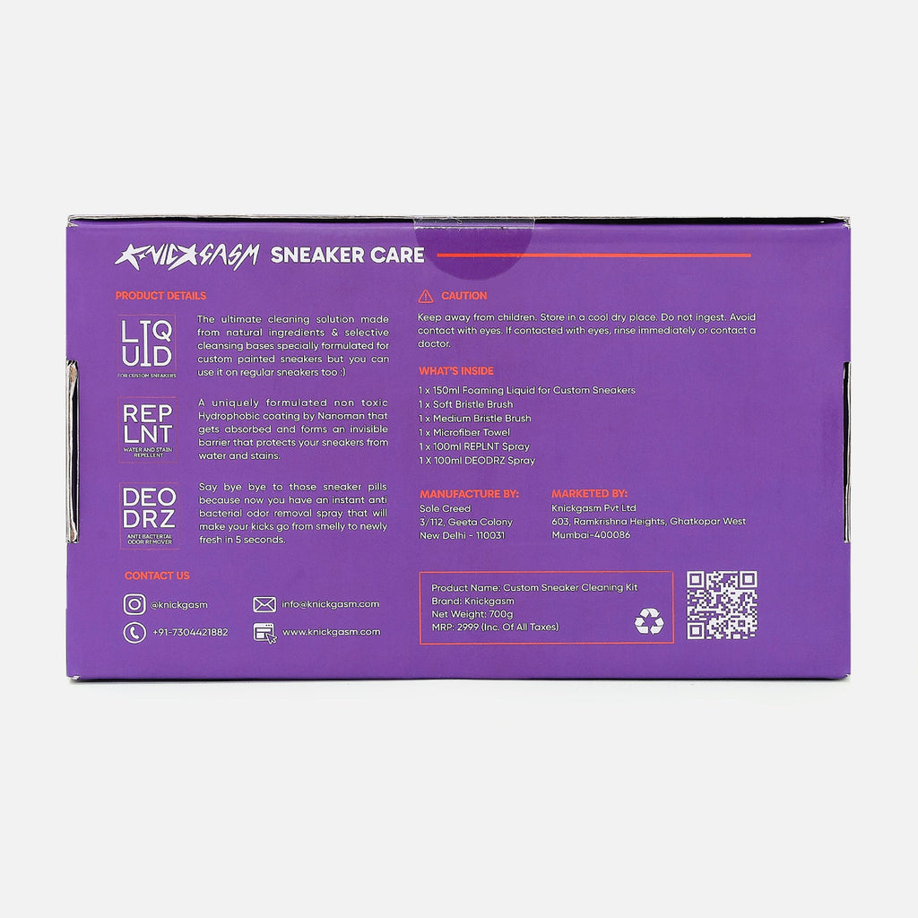 Knickgasm’s Liquid Foam Cleaner is a non-alcoholic, specially formulated solution designed to remove dirt and grime effortlessly while preserving the vibrancy of custom artwork and premium materials. Infused with gentle conditioners, it keeps your sneakers looking fresh, clean, and as unique as the day they were designed.
